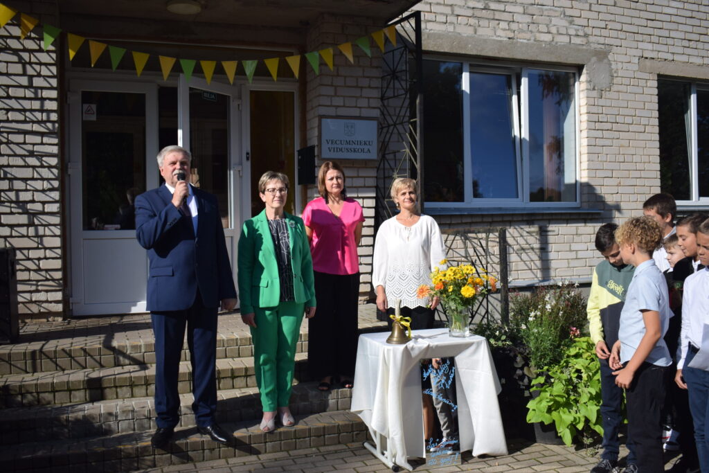 Vecumnieku vidusskolas audzēkņiem Zinību diena, 1. septembris, sākās ar satikšanos klases stundā, bet pēc tam visi pulcējās skolas priekšā, lai svinīgi iezvanītu jaunā mācību gada sākumu.