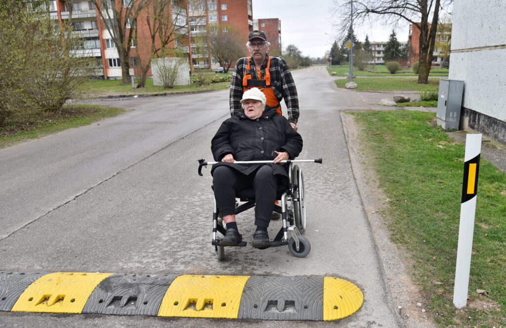 Tālākajā maršrutā atrodas šķērslis no asfalta, kuram vieglāk brauc pāri gan mašīnas, gan arī var pārbraukt cilvēks ratiņkrēslā. Ja grib, var ierīkot šādu ātruma slāpētāju. Foto: Uldis Varnevičs