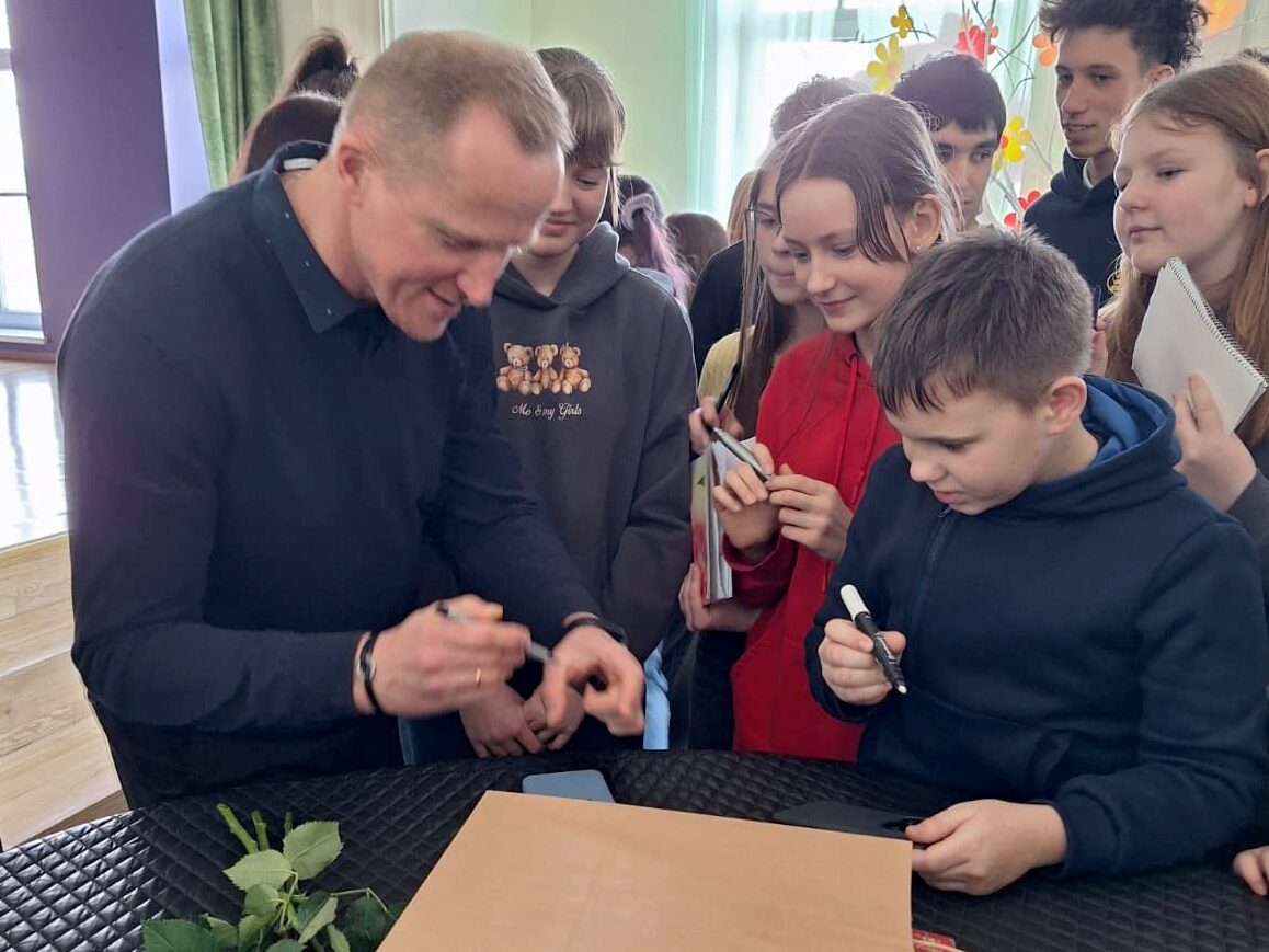 Treneris Bauskas pamatskolēniem dalījās pieredzē par savu ceļu hokejā – gan spēlētāja, gan trenera lomā, stāstīja par komandas sporta ikdienu, uzvarām un zaudējumiem, uzsverot, ka panākumu pamatā vienmēr ir disciplīna, darba spējas un izglītība.