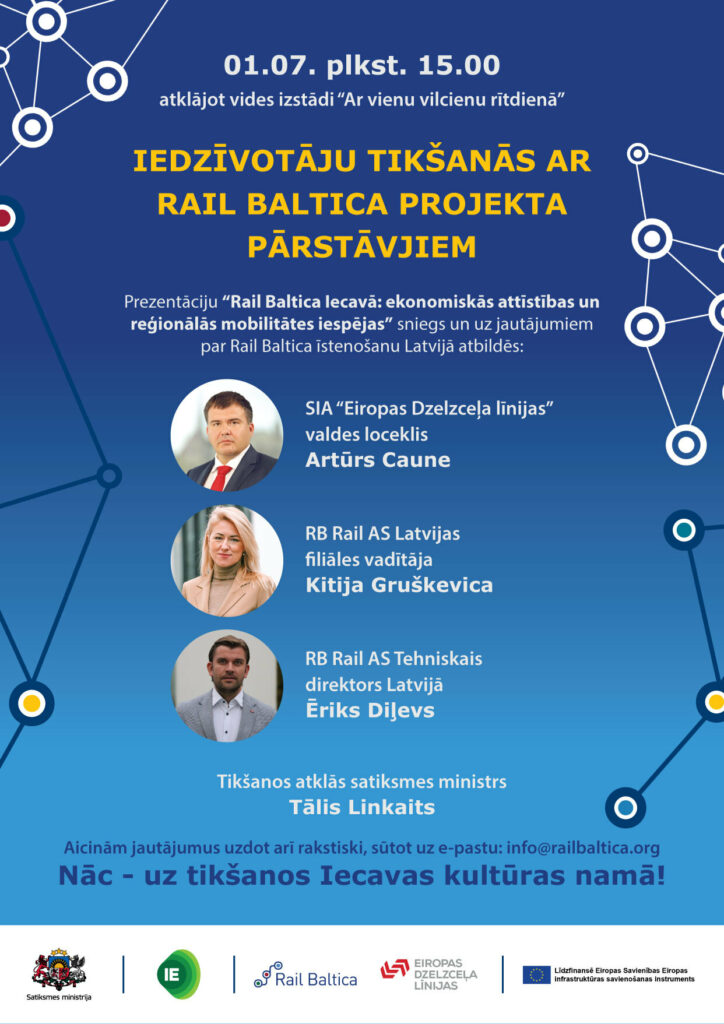 Iecavas iedzīvotājiem būs iespēja tikties ar satiksmes ministru un “Rail Baltica” projekta ieviesējiem Latvijā, un uzdot jautājumus par jaunās dzelzceļa līnijas projektēšanas gaitu, nākamajā gadā plānoto pamattrases būvniecību ārpus Rīgas, Iecavas infrastruktūras apkopes punktu un reģionālo dzelzceļa staciju, kā arī citiem interesējošiem tematiem.