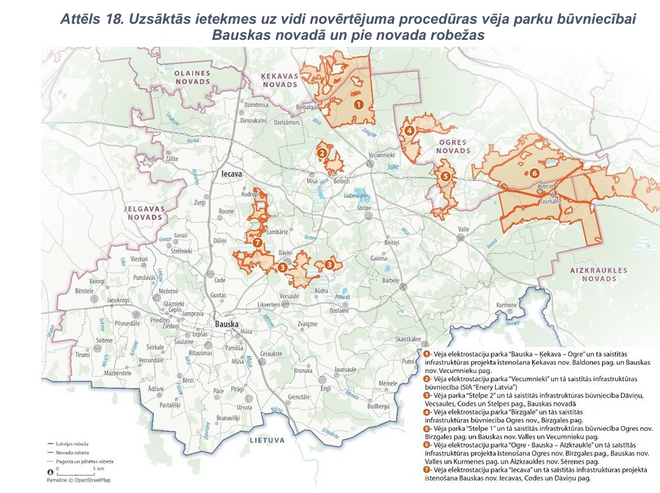 | Ogre-Bauska-Aizkraukle | SIA “Latvijas vēja parki” | Līdz 60 VES, plānotā jauda ~480 MW | 17304,3 | 16.08.2023. lēmums Nr. 5-02-1/19/2023 |
