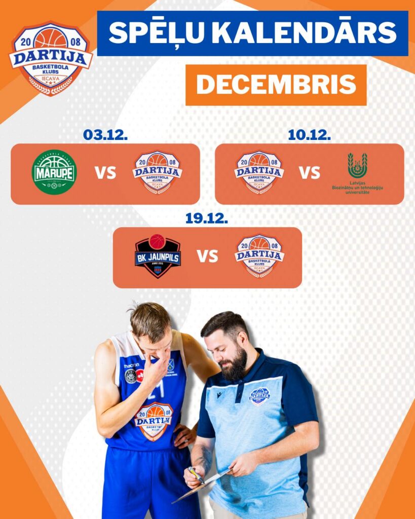 Nākamais mačs iecavniekiem būs izbraukumā šodien, 3. decembrī. Pulksten 20 Tīraines sporta kompleksā BK “Dartija” stāsies pretī “Mārupes SC” komandai. Tā būs pēdējā spēle pirmajā aplī.