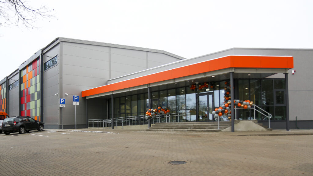 Jaunās ēkas galvenie objekti ir septiņus metrus augstā un 30×45 metrus lielā sporta zāle un tribīnes ar 300 skatītāju vietām. Ēkā ir arī administrācijas telpas, vingrošanas zāle, garderobes un labierīcības apmeklētājiem, treneru un sporta pedagogu darba kabineti, tiesnešu un sportistu ģērbtuves ar sanitārajiem mezgliem, inventāra novietnes.