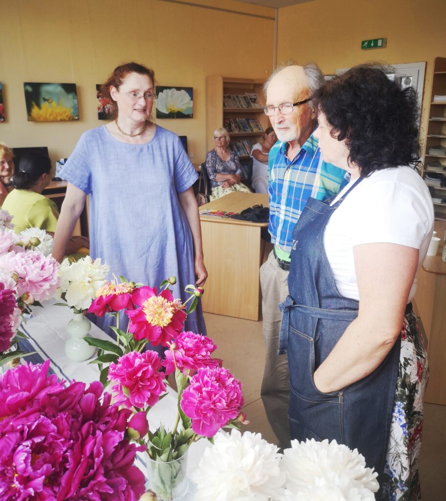Edvarta Virzas Iecavas bibliotēkas telpas piepildīja peoniju ziedu saldā smarža, jo dažādu šķirņu ziedi bija izkārtoti bibliotēkā vairākās vāzēs, lai ikviens varētu ziedus apskatīt un iepazīties ar tā īpatnībām tuvāk. Bibliotekāre Jolanta Ignate atzīst, ka karstums pasākumu nedaudz ietekmēja, jo tas norisinājās iekštelpās, taču par spīti tam savi desmit interesenti uz krāšņo un smaržīgo tikšanos ar Andreju Lasmani ieradās.