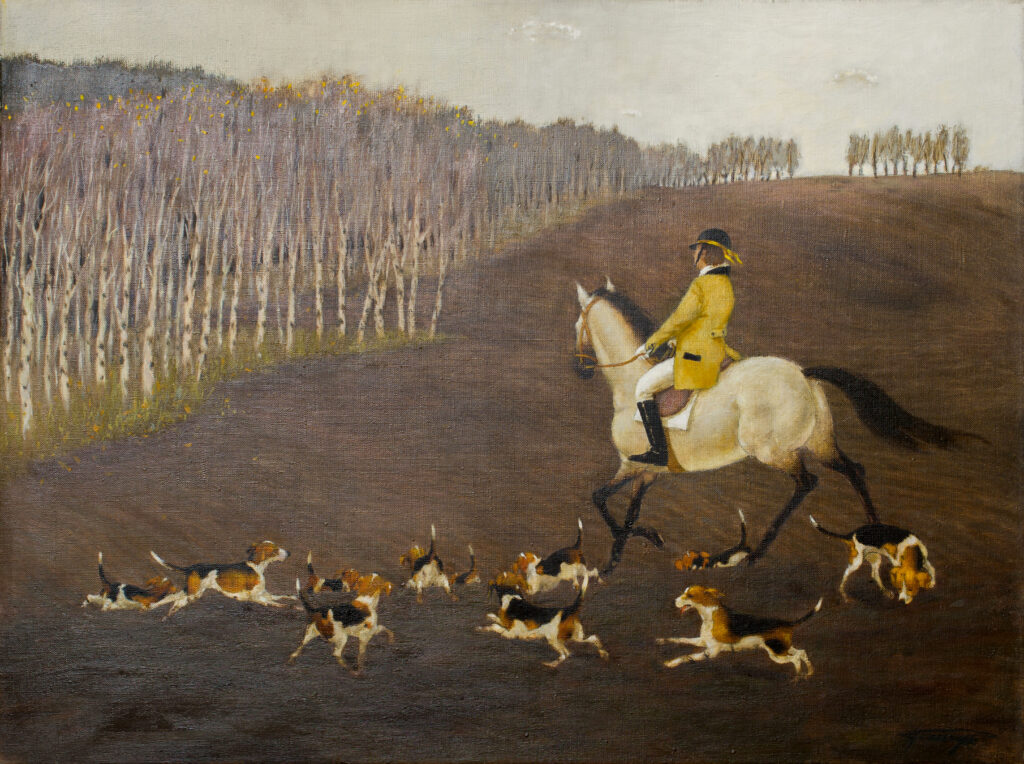 Viņš pastāstīja, ka izsolei virzītais mākslas darbs gleznots laikā, kad Tatjanai favorīttēma bija gan antīkās, gan karaliskās medības. «Medības kā teātris, performance, tradīciju izpausme Rietumeiropā un arī cara laiku Krievijā. Ar ragu skaņām, speciāliem tērpiem un visu ar to saistīto anturāžu, kas bijis senajos laikos. Tatjanas gleznās nav nogalinātu dzīvnieku, asiņu un citu vardarbīgu skatu. Tas ir kā pretstats primitīvai slepkavošanai un ļaunumam, kas pašlaik dominē karā pret Ukrainu,» paziņo P. Rikāns.