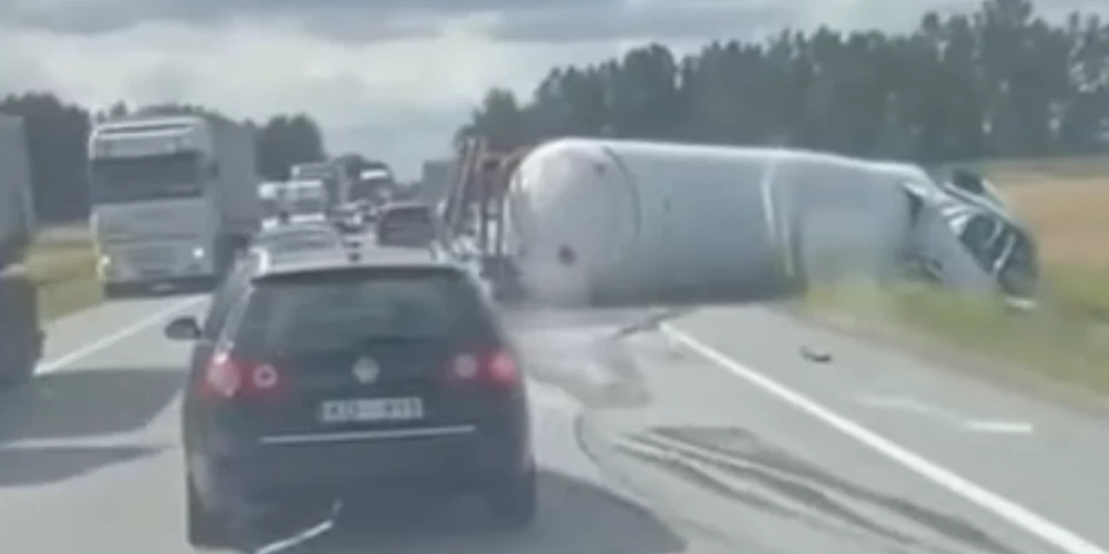 Iecavas pagastā uz autoceļa Rīga-Bauska-Lietuvas robeža (Grenctāle) (A7) pie Dimzukalna ceturtdien apgāzies gāzes cisternas auto, aģentūru LETA informēja Valsts policijā.