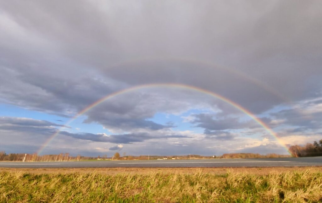 Varavīksnes loki spilgti atklājās moteļa “Brencis” apkārtnē, varavīksni varēja novērot arī pār uzņēmuma “Balticovo” ēkām.