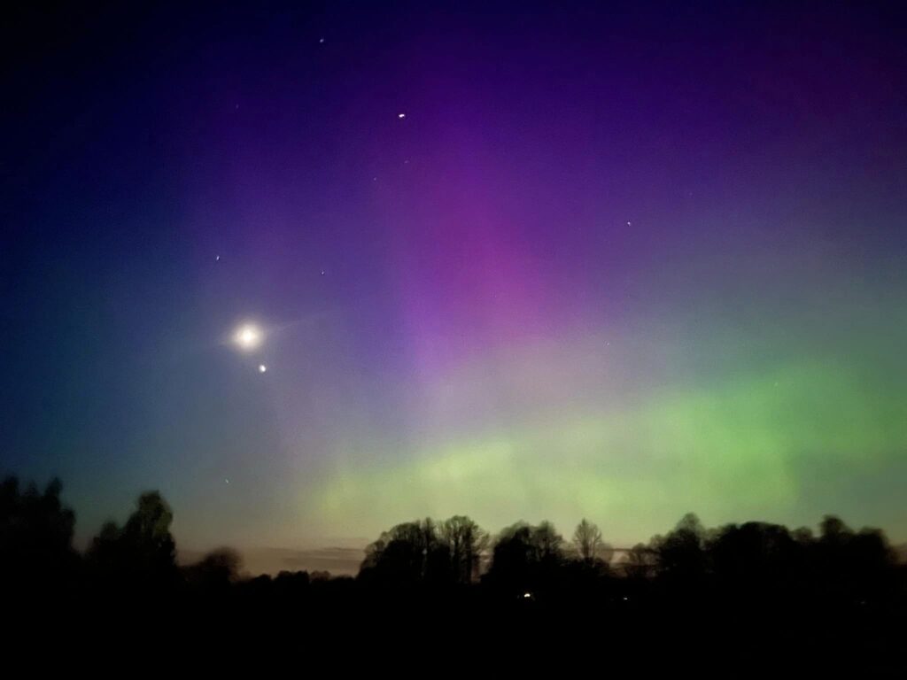 “Es izmantoju aplikācijas “Aurora” un “Aurora alerts”, kurās sekoju līdzi rādītājiem. Biju šokā par KP indeksu 6 un vēlāk jau 8 man tuvējā apkārtnē. Vislabāk ziemeļblāzmu skatīt caur kameras aci, jo bieži vien ar neapbruņotu aci kāvus neredz. Šoreiz nesapratu, kāpēc nerāda arī kamera, ja indekss tik augsts. Taču pirmo reizi ieraudzīju, kā pārskrien gaisma un tieši virs galvas. Pēc tam izlasīju, ka arī dienvidu pusē redz, bet es vēros tikai uz ziemeļiem,” savos iespaidos dalās ziemeļblāzmas vērotāja Ilze.