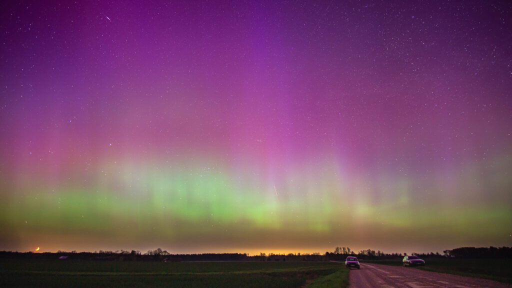 Baušķenieks pastāstīja, ka pirmais ziemeļblāzmas vilnis bijis ap pulksten 22, pat nevajadzējis skatīties uz ziemeļu pusi, jo uz mirkli bija redzama dienvidu pusē. Otrais vilnis sekojis ap pulksten 1:40 ar mēnesi fonā un skats bijis ļoti iespaidīgs.