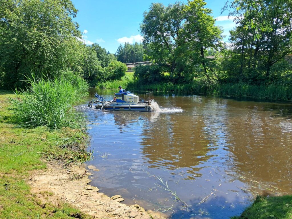 Foto: Ar pašvaldībai piederošo tehniku tiek tīrīta Iecavas upe. /Iecavas apvienības pārvaldes foto