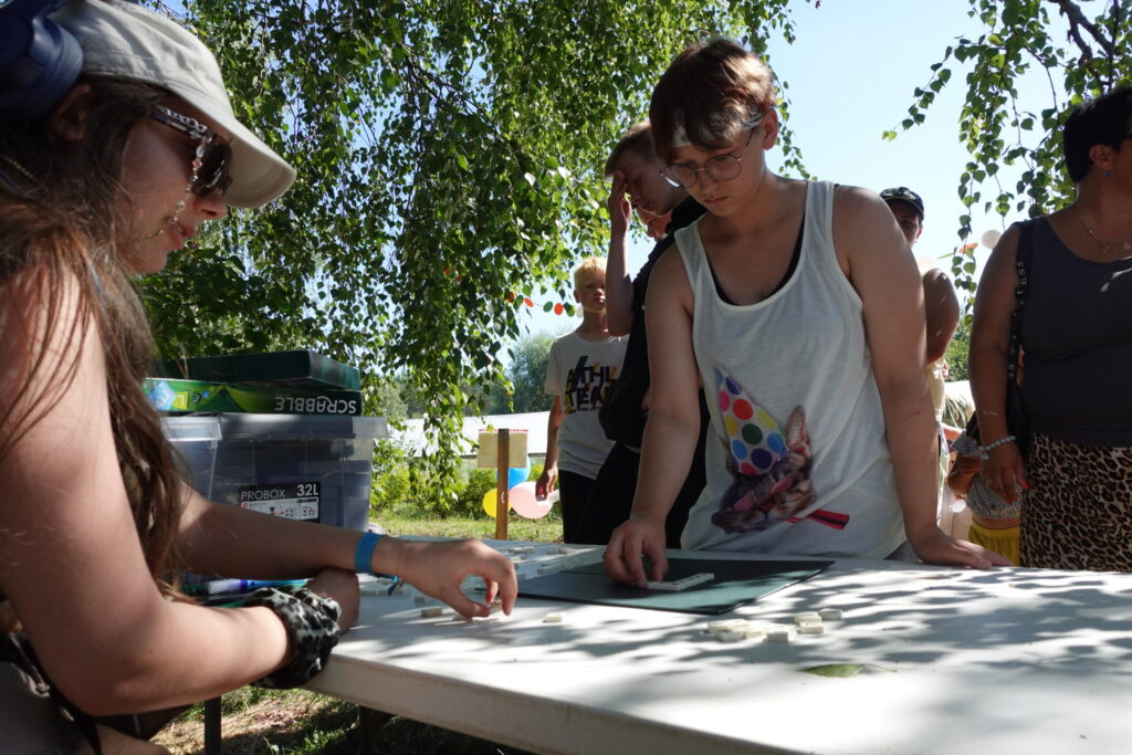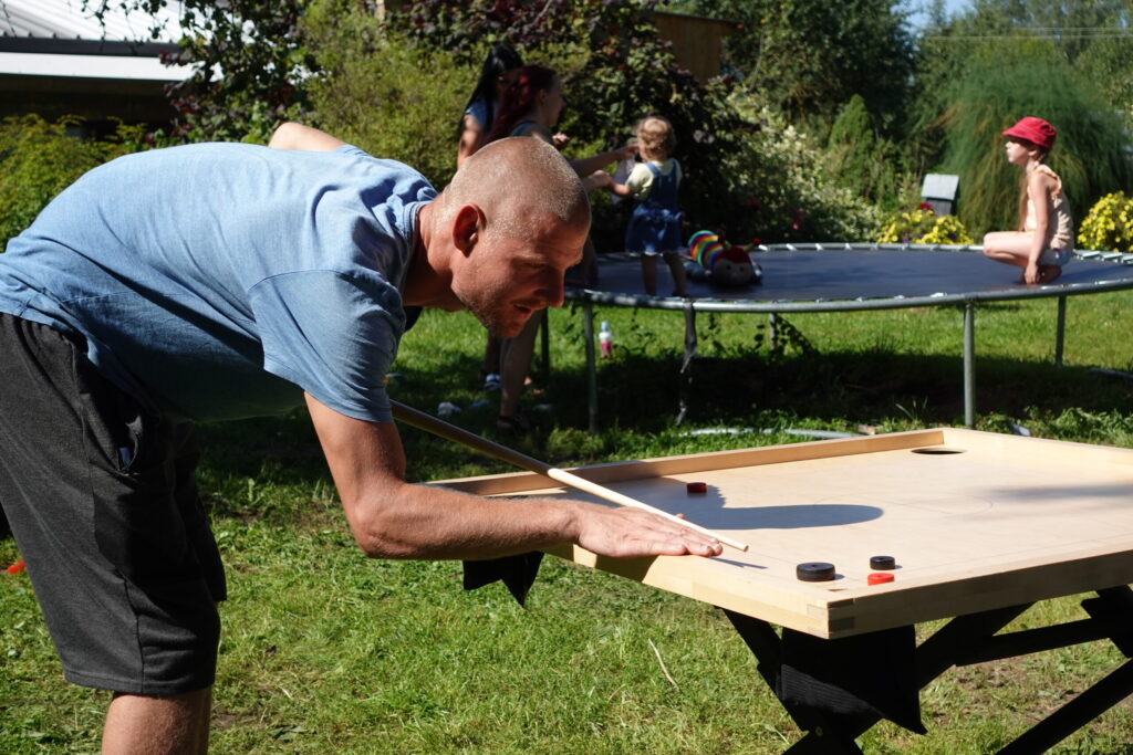 Pasākumā ir ieradušies jaunieši, ar kuriem strādā Arnis, kā arī ģimenes ar bērniem, kuras uzaicinājusi biedrība, un arī tie, kuri pasākuma afišu ieraudzījuši internetā. Arnis pastāsta, ka jaunieši viņam palīdzējuši teritorijas sagatavošanā, kā arī vadīt aktivitātes.