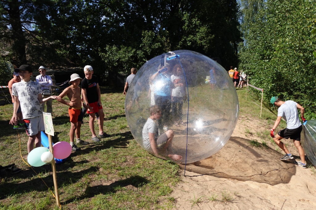 Vienā no stacijām ir iespējams izmēģināt spēkus šaušanā ar «gaiseni» pa skārda bundžām, kamēr kādā citā stacijā instruktora uzraudzībā var uzrāpties klinšu sienā. Pagalma dīķī bērni var doties, atrodoties ūdens bumbā, kurā līdzsvaru noturēt nav tik vienkārši, bet tā ir arī izklaides «odziņa», jo smiekli un klaigas parāda bērnu sajūsmu.