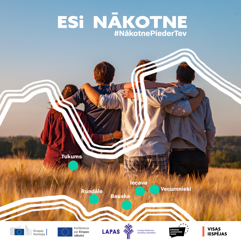 Nākamās nedēļas nogalē, no 13. līdz 15. maijam, Latvijas Platforma attīstības sadarbībai(LAPAS) kopā ar domubiedriem un ar Eiropas Komisijas pārstāvniecības Latvijā atbalstu viesosies Zemgalē – Rundālē, Bauskā, Iecavā, Vecumniekos, Tukumā – ar piecām noslēguma diskusijām ciklā «ESi nākotne», kurās aicinās dalībniekus dalīties ar savu vīziju par Eiropu un savu lomu nākotnes Eiropā, «Bauskas Dzīvi» informē Sandra Rubene, LAPAS komunikācijas vadītāja.