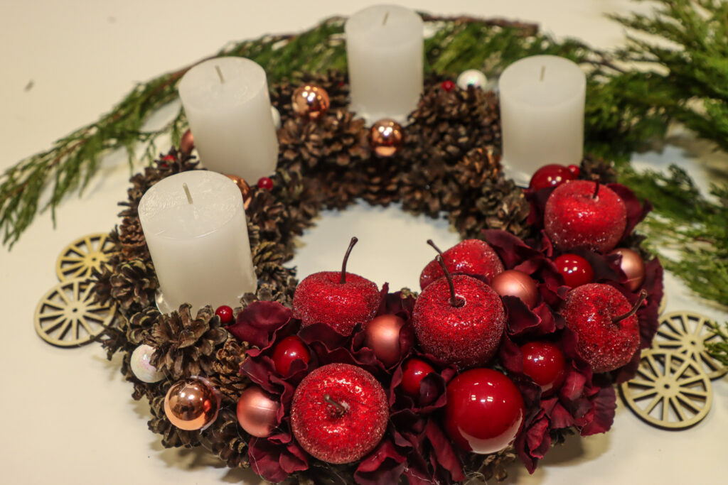 Biedrībā informēja, ka Adventes vainagu pamatnes ir no 20 līdz 30 centimetru diametrā, savukārt dekorētais eksemplārs sasniedz 30 līdz pat 40 centimetru diametru. Katrs vainags ir unikāls, izmantojot dažādas krāsas, tehnikas un dizainus, un tie radīti ar jauniešu rokām no dažādām sociālajām grupām, piepalīdzot profesionālam floristam, kas nodrošināts, sadarbojoties ar Nodarbinātības Valsts aģentūru.