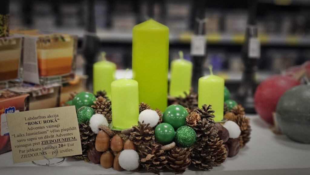 Pirmssvētku gaidīšanas laikā ikvienam ir iespēja iegūt savā īpašumā biedrības “Laiks jauniešiem” komandas veidotus Adventes vainagus. Biedrība vainagus pārdod par ziedojumiem, kurus paredzēts novirzīt senlolota sapņa īstenošanai – mikroautobusa iegādei. Auto kalpotu kā mobilais jaunatnes darba un labdarības akciju atbalsta transportlīdzeklis lauku reģionos un ļautu īstenot vēl vairāk noderīgu jauniešu aktivitāšu un palīdzības projektu dažādās vietās.