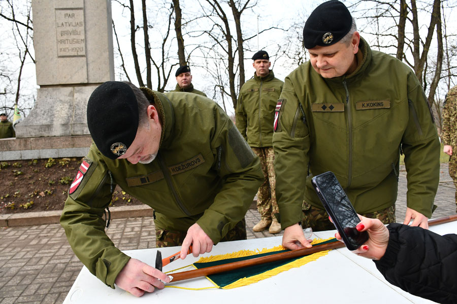 Īpašā ceremonijā Bauskā notiek Zemessardzes 53. kājnieku bataljona virsseržanta maiņa (1)