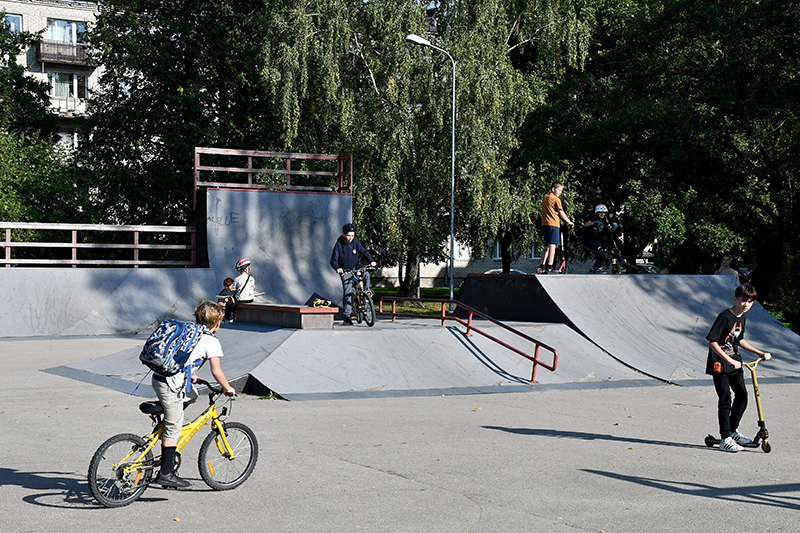 Skeitparkā šī gada septembra vidū pirms demontāžas darbiem bērnu un jauniešu netrūka. Foto: Ivars Bogdanovs