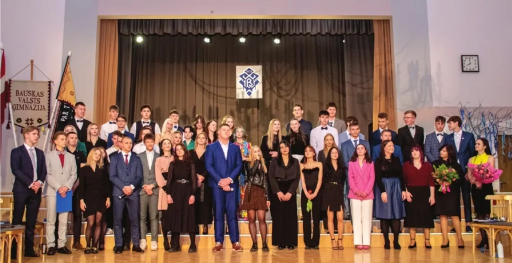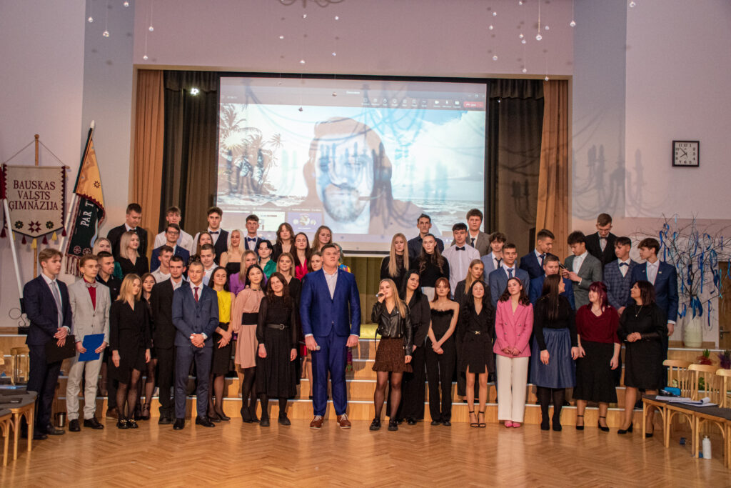 Pasākuma oficiālā daļa rit uz priekšu, pēc direktores uzrunas un apsveikuma ir laiks «paspīdēt» vienpadsmitajiem. Elizabetes Šulces kokles spēles pavadījumā divpadsmitos sveic Keita Kondore: «Šeit, te un tagad mēs svinam skolu, apzināmies savu izvēli piederēt Bauskas Valsts ģimnāzijai. Jūs, divpadsmitie, esat bijuši mūsu skolas paraugs un zobu sāpes reizē! Vēl ilgi atcerēsimies jūsu organizētās «iesvētības» vidusskolā, bet vēl vairāk priecāsimies ieņemt skolas vecāko godu nākamgad. Mēs, vienpadsmitie, vēlamies un vēlam arī jums nekad neaizmirst savu skolu, neaizmirst šeit iegūtos draugus, uz ielas pasveicināt skolotājus, žetonu glabāt cieši pie sirds un lepni visai pasaulei teikt, ka es reiz mācījos Bauskas Valsts ģimnāzijā!» Un daži acu pāri lustras gaismās mirdz asaru pilni. Apziņa, ka vēl nedaudz – un viss. Skola, kurā pavadīti 12 gadi, paliek pagātnē.