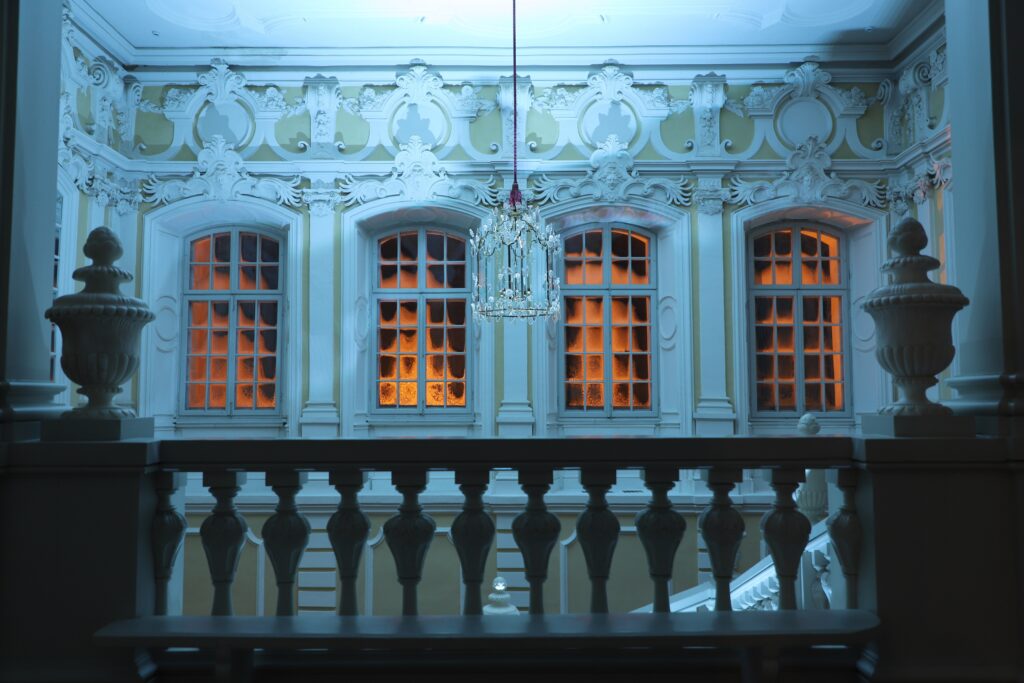 Jau otro gadu veidojot gaismas uzvedumu Rundāles pilī un strādājot ar greznajām lustrām, gaismu mākslinieks Oskars Pauliņš ar īpašu tehnoloģiju palīdzību gaismekļiem ne tikai liks iemirdzēties visā krāšņumā, bet piešķirs tiem fantāzijas žanram raksturīgo. Notiks acīmredzamais neticamais: lustras dejos, stāstīs, kustēsies. Savukārt režisora Kārļa Anitena veidotais skaņu celiņš ļaus kristāliskā mūzikas un skaņu pinumā sadzirdēt dažādās pils telpās iespējamās sarunas. Tās iedvesmojušas patiesas vēstures liecības. Vakaros ar deju performancēm režisora un gaismu mākslinieka radīto lustru balles stāstu papildinās četri dejotāji horeogrāfa Reiņa Rešetina un Rundāles pils gida Olafa Soloveikas vadībā, iejūtoties daudzveidīgos tēlos, notikumos, situācijās.