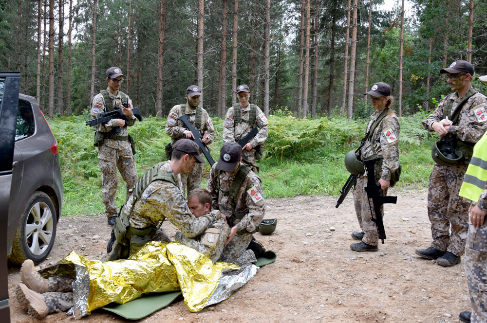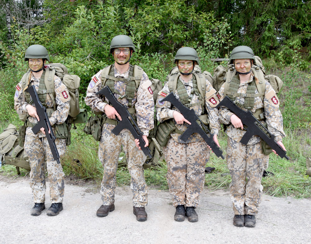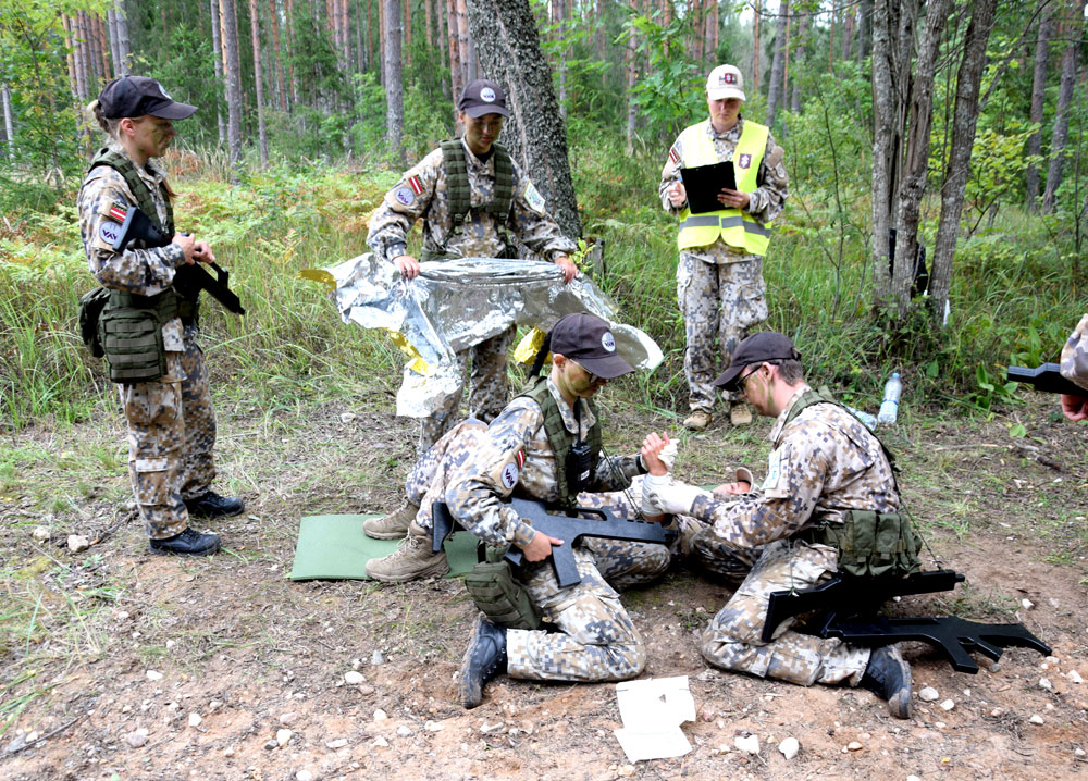 Bauskas novada jauniešus izdodas satikt lauka kaujas iemaņu kontrolpunktā – galvās ir ķiveres, bet sejas noklātas ar kamuflāžas krāsu, lai labāk iekļautos mežainajā apvidū. Mugurā visiem karabīnes, mugursomas, kurās ir viss nepieciešamais izdzīvošanai mežā, guļammaiss, paklājiņš, bet rokās katram ieroča imitācija.
