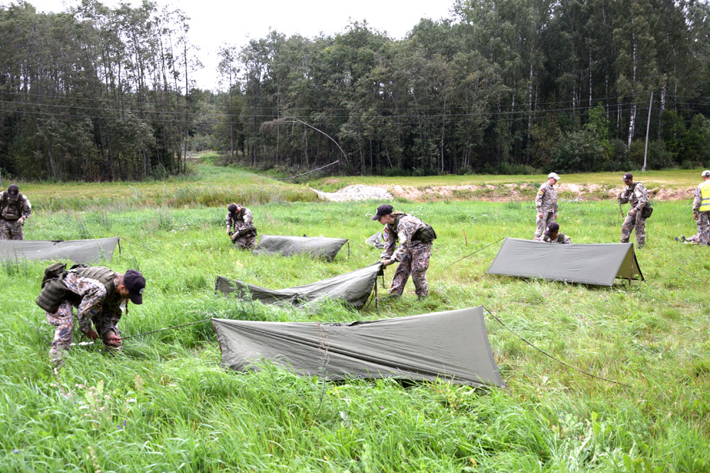 «Bauskas Dzīve» militārajā poligonā «Lāčusils» ieradās divas dienas pirms nometnes noslēguma, kad dalībniekiem bija jāpilda gala pārbaudījums – piecus kilometrus garš pārgājiens ar uzdevumiem kontrolpunktos.