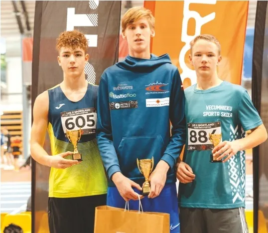 Toties 60 metru barjerskrējienā divas medaļas. Šoreiz ātrāks bija Kristiāns Lauva – rezultāts 8,66 sekundes un sudraba medaļa. Savukārt trešā vieta sporta skolas «Dartija» audzēknim Gvido Miezeram – viņš finišēja tikai 0,02 sekundes vēlāk – 8,68 sekundēs, un viņam bronzas medaļa. Sudraba medaļu tāllēkšanā atkal ieguva sporta skolas «Dartija» audzēknis Rihards Pūķis – 7,02 metri.