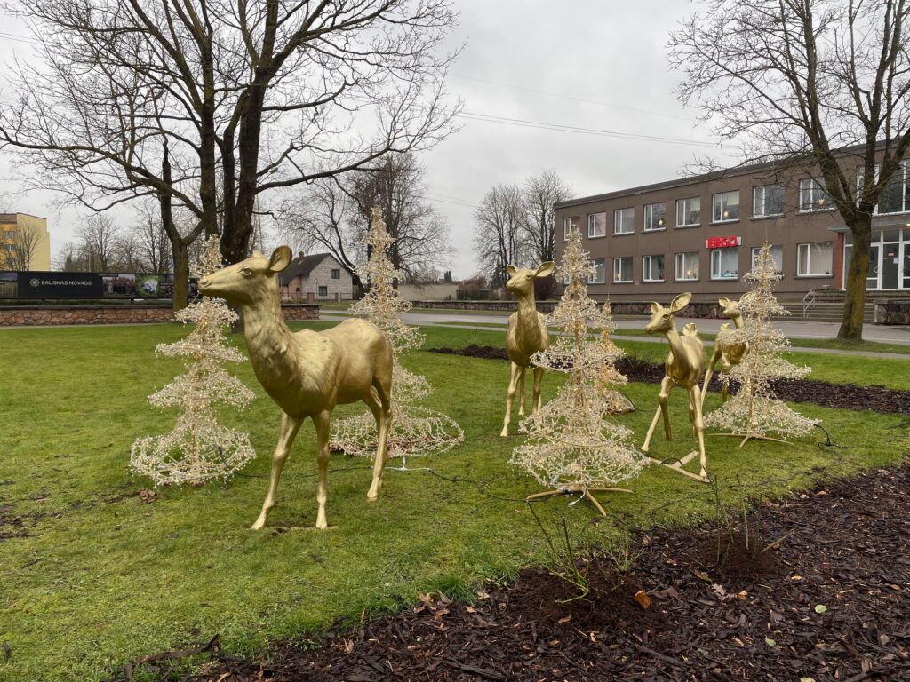 Skaists dekors izvietots pie novada pašvaldības administrācijas ēkas – mirdzošu eglīšu un zeltainu stirnu grupa, ko fotografē ne viens vien garāmgājējs. Un atkal, kā norāda eksperti, – tumsā redzamas tikai eglītes, skaistās stirnas pazūd, jo nav izgaismotas. «Ja pie stirnām zemē būtu prožektoriņi, būtu pavisam cits efekts ieguldītajam darbam un līdzekļiem,» skaidro eksperti.