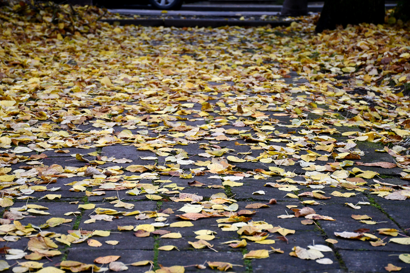 Bauskā vairākas bruģētās ielas ir klātas ar lapām. Foto: Ivars Bogdanovs