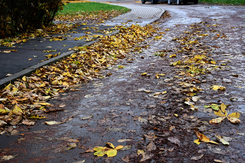 Šonedēļ Bauskā tīrītas galvenās ielas, bet mazākas nozīmes brauktuves pilsētā ir klātas ar piebrauktām lapām. Foto: Ivars Bogdanovs