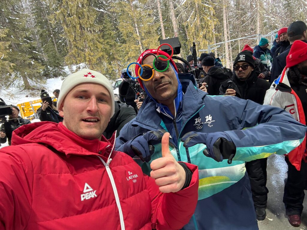 ASV reperis Snoop Dogg vakar viesojās Kortīnas Olimpiskajā trasē un apciemoja sportistus bobsleja treniņā. Foto:LOK