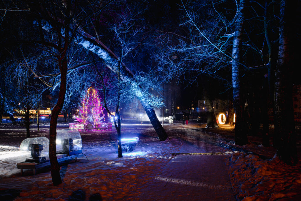 Līdz 2. janvārim Korfa dārzā  Bauskā ikviens vēl var pagūt izbaudīt svētku sajūtas, kur iekārtots vides noformējums «Mirdzošā simfonija kokiem».