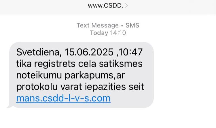 Krāpnieki CSDD vārdā turpina izsūtīt viltus īsziņas; Mežotnes pagasta iedzīvotājam izkrāpti 1300 eiro (3)