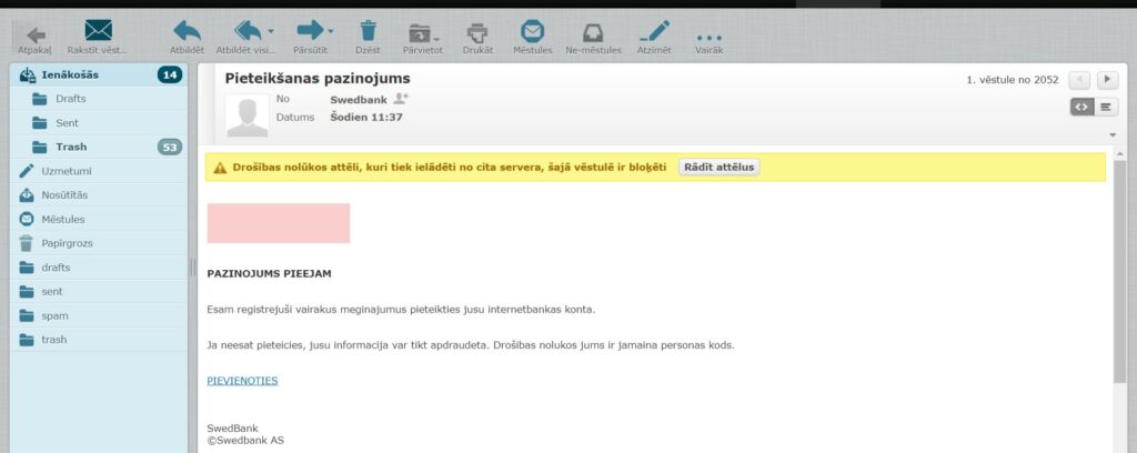 Vairāki baušķenieki pagājušajā nedēļā ziņojuši par krāpnieku izsūtītām ziņām, kas rakstītas «Swedbank» vārdā. Vēstulē tiek norādīts, ka reģistrēti vairāki pieteikumi internetbankai, un drošības nolūkos aicina pievienoties un nomainīt savu informāciju.
