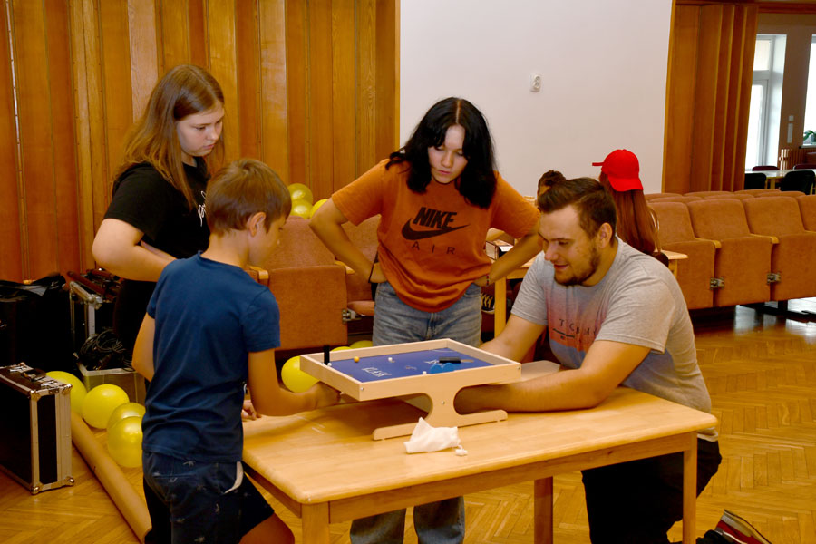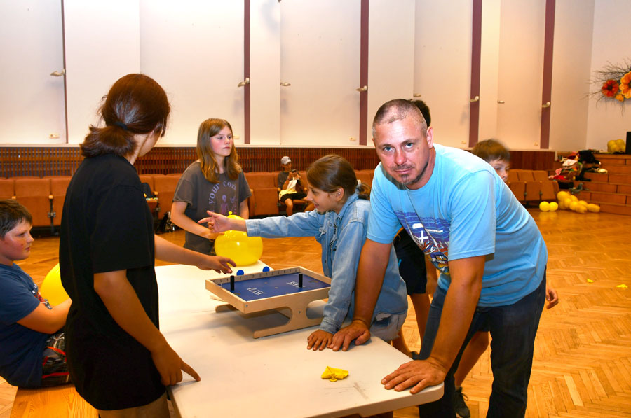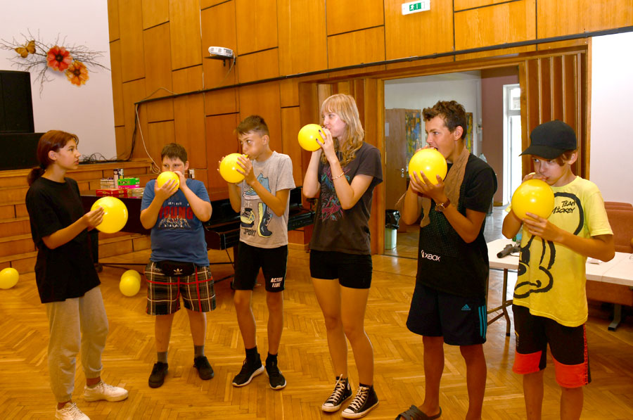A. Zunda stāsta par nodarbībām. Pirmdien bijusi iepazīšanās diena, kad spēlētas spēles. Sazinājušies ar ukraiņu bērniem krieviski, pieaugušie un tie jaunieši, kas prot krievu valodu, nezinātājiem tulkojuši. Lai būtu vieglāk iemācīties latviešu valodu, iesākuši ar ciparu apgūšanu latviski. Aizvadīta arī popiela, kad ukraiņu bērni arī dziedājuši savas dziesmas. Otrdien paredzēta teātra spēlēšana, zīmēšana, atjautības spēles, dambrete, lielizmēra «Cirks», ko pazīst arī ukraiņi. «Viņi ir sirsnīgi, ātri iejūtas. Ukraiņiem trūkst bērnu draudzības, tādēļ viņi no sirds iesaistās visās aktivitātēs,» teic A. Zunda.
