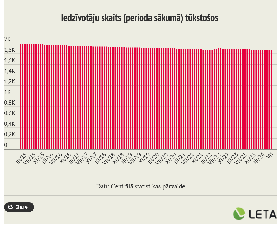 Šogad 1.jūlijā Latvijā provizoriskais iedzīvotāju skaits bija 1,861 miljons.