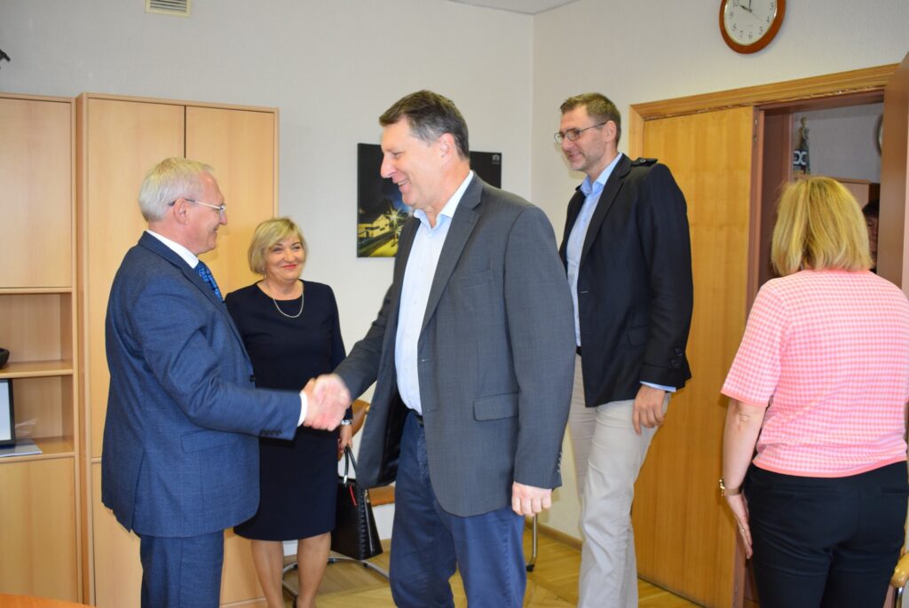 Ar viesiem tikās Bauskas novada domes priekšsēdētājs Aivars Okmanis (no kreisās). Foto: Bauskas novada dome.