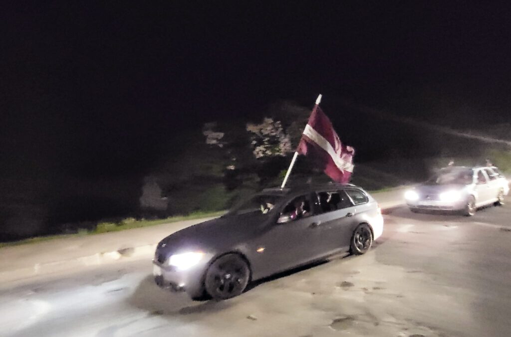 Latvijas vīriešu hokeja izlase ceturtdien Rīgā pasaules čempionāta ceturtdaļfinālā pieveica Zviedrijas valstsvienību, pirmoreiz vēsturē iekļūstot pusfinālā. Latvija svinēja uzvaru ar 3:1 (1:0, 0:1, 2:0). Bauskas ielās izbrauca līdzjutēji, ar Latvijas karodziņiem rotātās mašīnās (K. Kalēja foto).