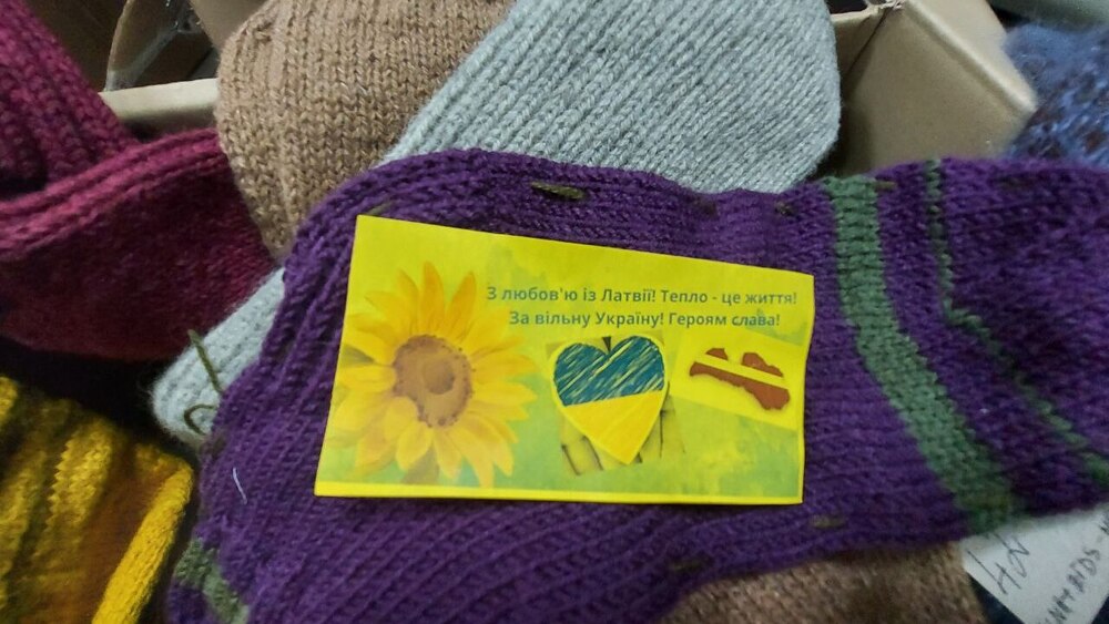 “Aizvadītā gada rudenī un ziemā mūsu noliktava Ventspils ielā 50, Rīgā, kļuva par sava veida tranzīta punktu tūkstošiem adījumu no visas Latvijas ceļā uz Ukrainu, kur tos nogādājām ar biedrības kravām vai citu organizāciju palīdzību. Noslēdzot iepriekšējo akciju, bijām laimīgi, pateicīgi un priecīgi par nosūtīto apjomu.