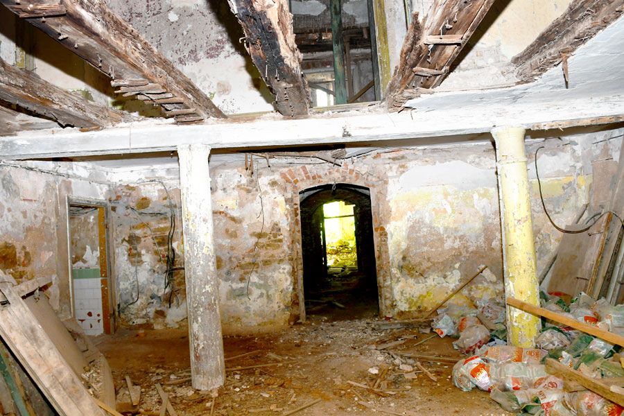 Kaucmindes muižas kungu dzīvojamai ēkai pēdējos gados vairākkārt mainījušies īpašnieki, kuri nav spējuši izdarīt neko vēsturiskās celtnes glābšanai. Attēlā – Kaucmindes pils ēkas ārskats un iekšskats. Foto: www.bauskasdzive.lv