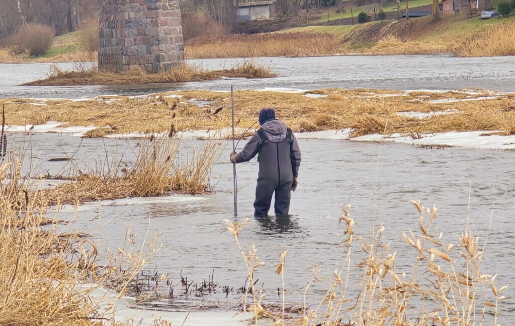 Reizi mēnesī Mūsā tiek mērīta upes caurplūde. Mērījumi šonedēļ veikti 4. martā. Foto: www.bauskasdzive.lv