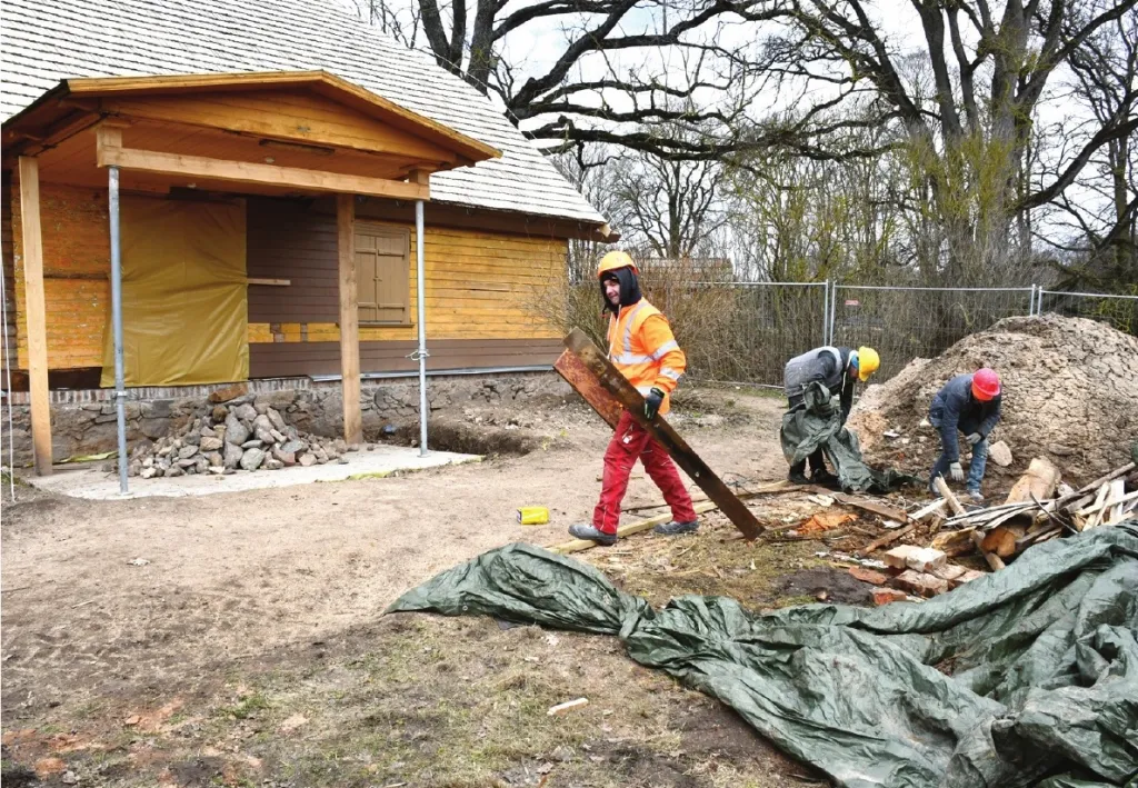 «Līdz šim ir atjaunota guļbaļķu sienu konstrukcija, daļēji paveikta arī sienu posmu nomaiņa, atjaunots jumta pārsegums, ieklāts jauns segums, restaurēti un jaunizgatavoti logi, pašlaik aptuveni 75% darba ir pabeigti,» informē «SIA Warss+» atbildīgais būvdarbu vadītājs Matīss Markovskis, «pašlaik notiek zemes reljefa panēšana, lai novadītu lietusūdeņus.»