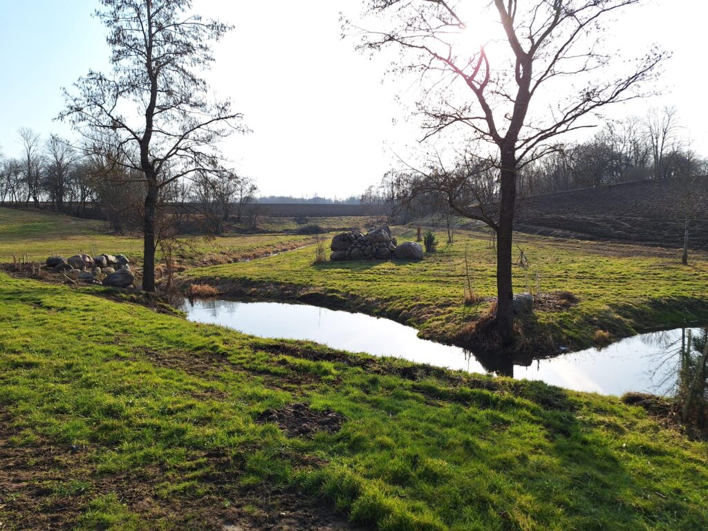 Ar laukakmeņu palīdzību izveidoti nelieli dīķīši, nostiprināti brūkošie krasti. Izveidotās krācītes bagātina Kaucītes ūdeņus ar skābekli, līdz ar to tajā parādījušās arī zivis. Akmeņi, kas nākuši no apkārtnes laukiem, veido arī dažādus ainavas elementus. Šobrīd no tiem palēnām top arī lielāks piramidāls objekts.