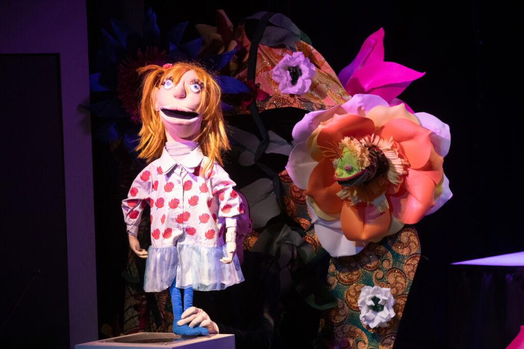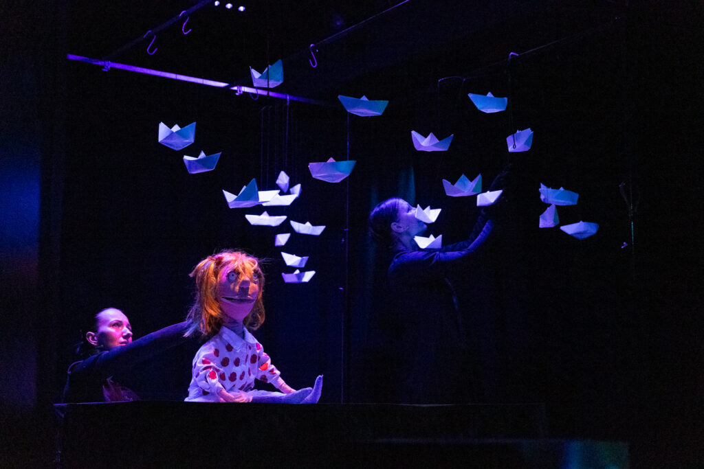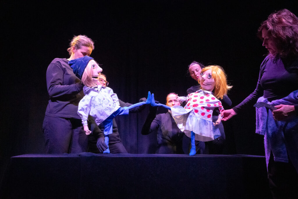Izrādē darbojas četri aktieri, bet katram jāatveido vairāki tēli. Aleksandrs Jonovs, kuru izrādes sākumā redzam kā apsargu vēlāk kļūst par galma vārnu Karro, pēc tam laupītāju un nemanāmi pieliek roku, lai uz skatuves kustētos ikeviena būtne un lieta. Arī aktrise Vija Mežale katrā savā uznācienā atklāj leļļu aktiera un lelles saspēles prieku — kā Kajs, laupītājmeitene, princis un puķu feja. Bet uzburt dziļu pārdzīvojumu un katra tēla emocionālo izaugsmi un transformācijas nav viegla lieta, tas no aktiera prasa dziļu izpratni un ļoti precīzu darbu ar lelli.