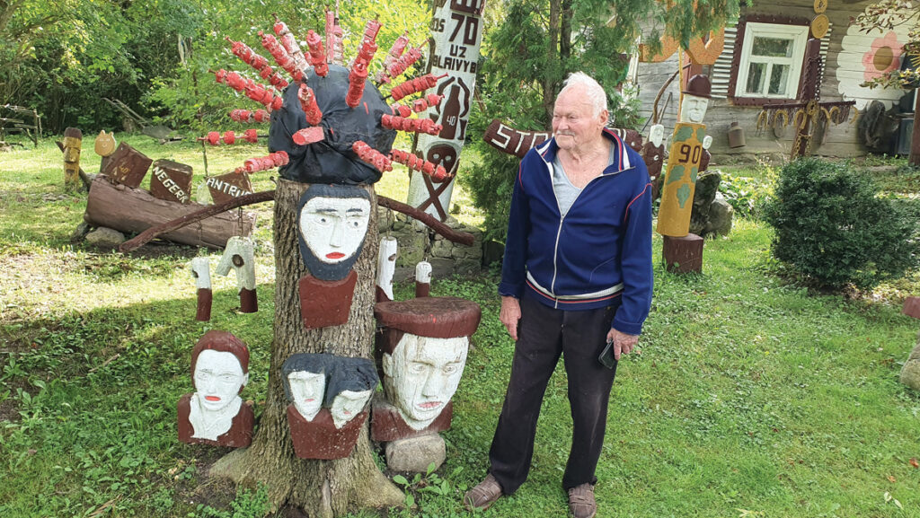 Dažādi koka skulptūru dārzi un parki Lietuvā ir visai populāri, bet «Muļķību sēta» šķita kas neredzēts un īsts atradums. Lielākoties no koka veidotie tēli ap autora māju labi saskatāmi no ceļa, bet, nesatiekot saimnieku Albertu, vismaz puse iespaidu būtu zaudēts. Devāmies pagalmā, kur šunelis ar skaļām rejām aicināja saimnieku mūs satikt.