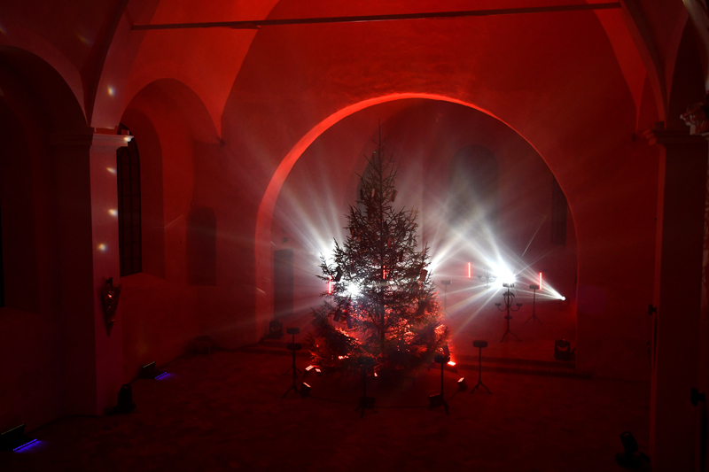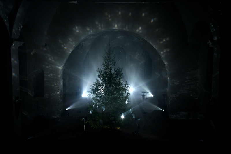 Mežotnes baznīcā skatāms apmēram 20 minūšu garš stāsts. Tā galvenā varone ir egle. Muzikālais pavadījums, kuru baznīcas akustikas dēļ bija jāizvēlas īpaši filigrāni, un dažādu krāsu gaismas stari egles zaros un baznīcas velvētajos griestos uzbur spraigu un vienlaikus meditatīvu stāstu. Katrs tajā var sadzirdēt kaut ko savu no pavasara atmodas skaņām dabā līdz bērnu smiekliem, kurus pārtrauc sirēnu skaņa un plīstošas eglīšu rotas šķindoņa.
