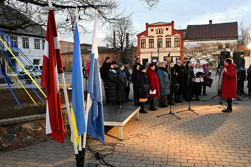 Pēc atklāšanas uzrunas Bauskas kultūras centra jauktais koris «Mežotne» kopā ar dziedātājiem no citiem koriem diriģentes Diānas Siliņas vadībā izpildīja Latvijas valsts himnu, tad ukraiņu valodā tika dziedāta arī Ukrainas valsts himna.