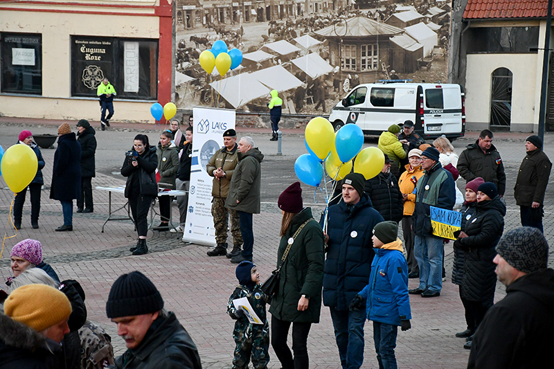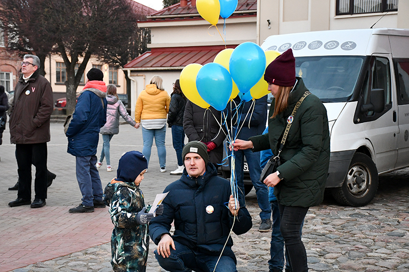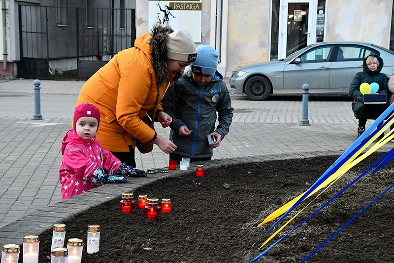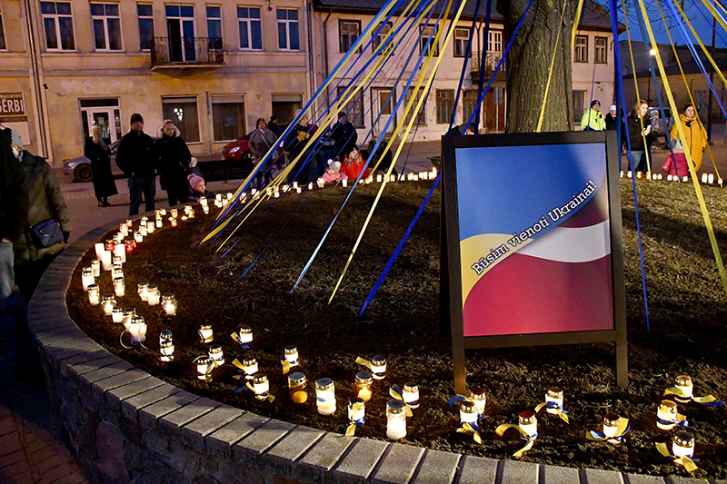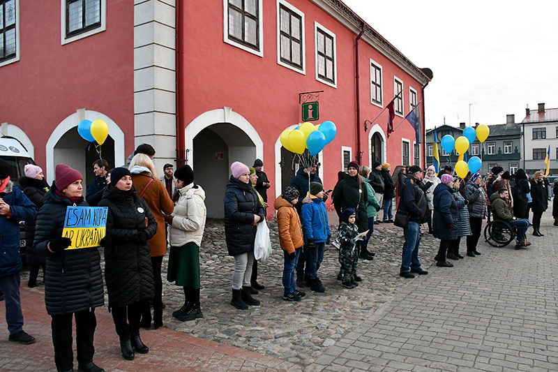 Latvija nedēļas vidū ietērpusies saulaini dzeltenā un debesu zilā krāsā. Bauska nav izņēmums. Pieminētajos toņos vairāki simti cilvēku, turot rokās plakātus, karogus, balonus, lentītes, trešdienas, 2. marta, vakarā iekrāsoja Bauskas Rātslaukumu. Atsaucoties Latvijas Pašvaldību savienības aicinājumam, te notika Ukrainas brīvības atbalsta mītiņš.