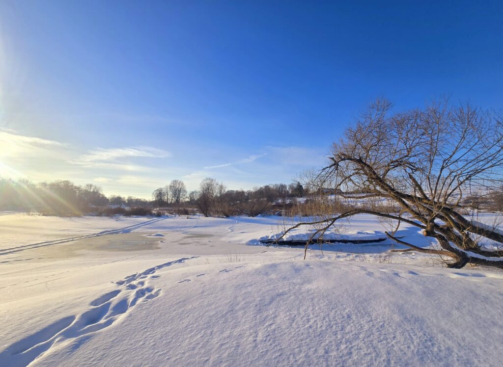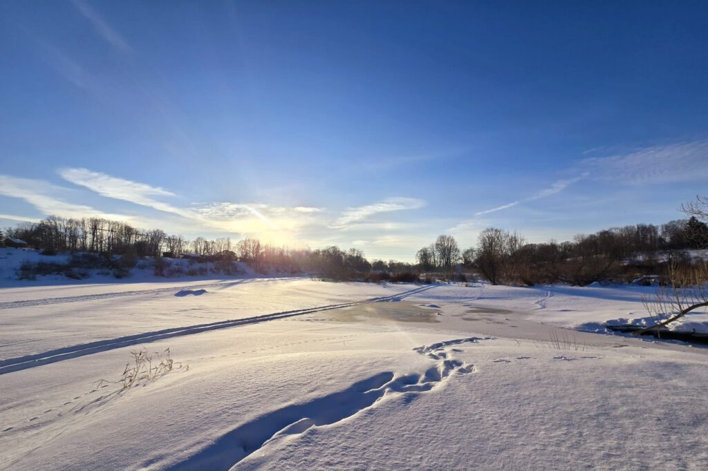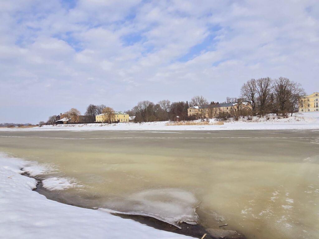 Pagājušās nedēļas vidū Ķirbaksalā upju satekas vieta vēl bija klāta ar ledu un sniegu.
