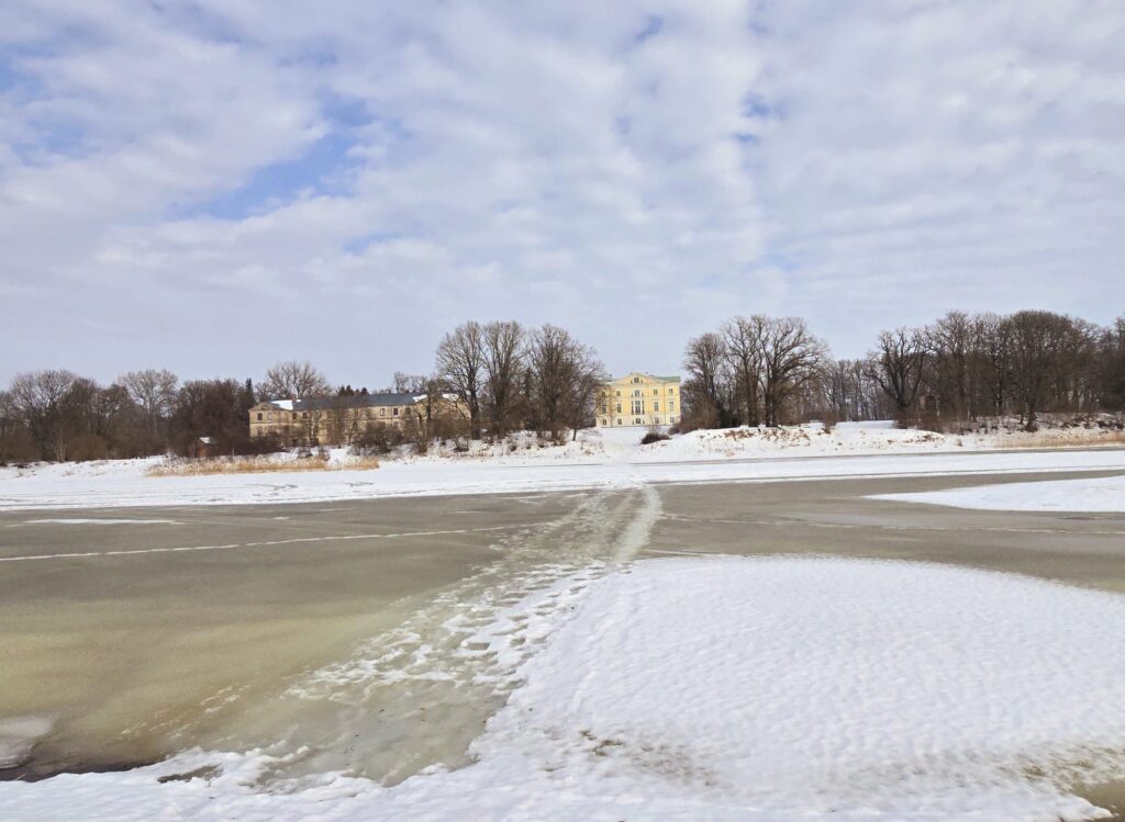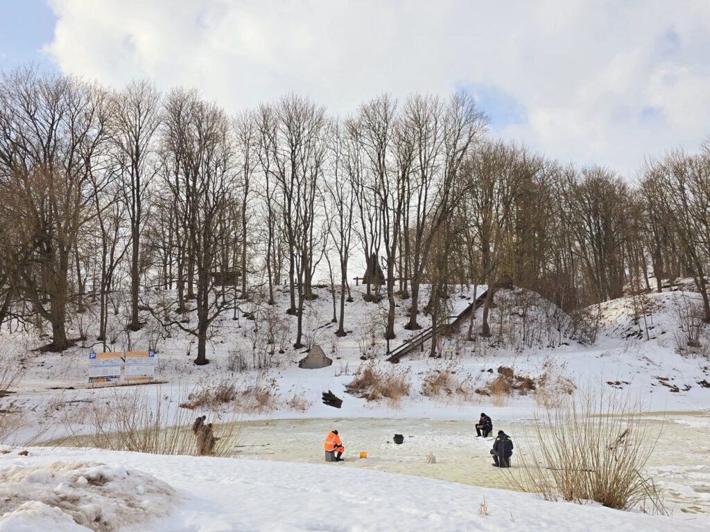 Brīvdienās pie Mežotnes pilskalna uz Lielupes ledus bija pulka bļitkotāju.