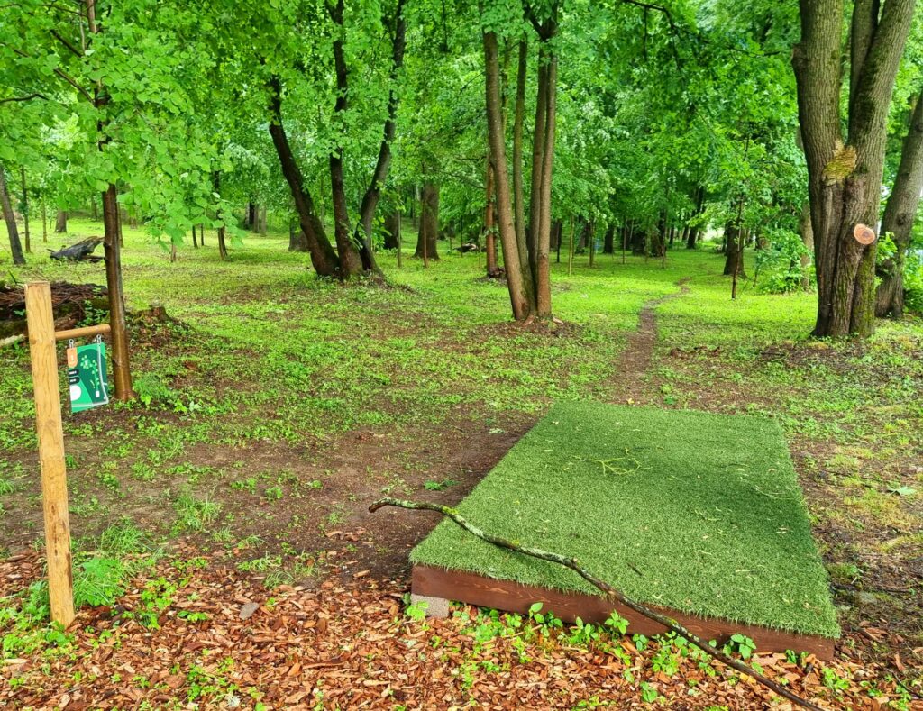 Parkā uzstādīts informatīvs stends par to, ka tas ir parks ar aizsargājamiem augiem, kā arī brīdinājumu, ka parkā ir ērces, jo tas citiem esot izrādījies pārsteigums. Tāpat saņemta piekrišana no parka apsaimniekotājas, ka uz stenda būs viņas tālruņa numurs, lai parka apmeklētāji viņu var sazvanīt un vienoties par disku izmantošanu.